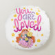 Gorgeous printed named round cushion. Lovely gold swan with pink named cushion. Good quality sized print