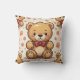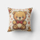 This is a cute teddy bear cushion with a red ribbon