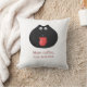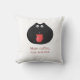 Throw Pillow with cute and funny print with cat and coffee and "more coffee, less worries" text.