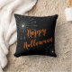 This throw pillow is shown in the colour black with a Halloween spider webs print.