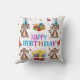 Throw Pillow, Happy Birthday Monkey Cupcake Cushion