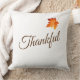 This throw pillow is shown in a White colour with a Thanksgiving Thankful text print with a pretty fall leaf accent.