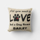 Throw Pillow with Dog Paw and All You Need is Love