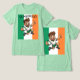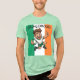 A bold, cartoon rugby hero leaps forward in triumph, grinning wide with rugby ball tucked tight and a confident thumbs-up. Set against Ireland’s green-white-orange, the design radiates power, pride, and unstoppable momentum.