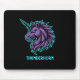 The centerpiece is the mighty Thunderhorn Unicorn, a fierce mascot with its electric lightning horn. This vibrant, neon illustration commands attention on any desk. Executed in an electric style, the design features a dynamic purple mane and a striking neon blue outline that creates an awesome 'gamer's den' atmosphere.