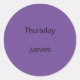 These day of the week stickers feature the word Thursday along with the English to Spanish translation, jueves. The background colour is purple, which can be customised. Thank you for shopping CherylsArt on Zazzle.