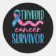 Thyroid cancer survivor design with pink and blue ribbon graphic.