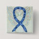 Awareness pin features the painting of a paisley blue awareness ribbon angel on a custom button pendant. Thyroid diseases uses a blue paisley ribbon since the paisley shape is similar to thyroid follicles in the thyroid gland. Blue paisley awareness angel ribbon art lapel pins or buttons can be customised with personalised messages to make great cause buttons for fundraiser pendants for causes, awareness pin gifts, or other special pendant events or awareness lapel pin for cause's occasions.
