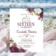Tiara,Confetti Burgundy Flowers Sweet 16 Party Invitation