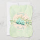 A mint green and cream coloured invitation, surrounded by a mint green and cream glittery, sparkley frame. It is embellished with a bouquet of blue roses, flowers, lace, pearls and ribbon, topped with a gold tiara bejeweled with pink jewels. Befitting for a baby shower, girls party, bridal shower or any occasion that suits your need. Personalise if you wish.