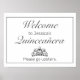 Quinceañera party welcome sign. Stylish modern minimal white and black design with tiara.