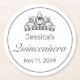 Quinceañera coaster. Stylish modern minimal white and black design with tiara.