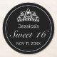 Sweet 16 coaster. Stylish modern minimal white and black design with tiara.