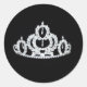 Round sticker shown in black with a photo print of a pageant crystal tiara. Customise this item or buy as is. Add your name.