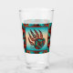 This is a Unique "One of a Kind" Southwest Tribal Bear Paw Beer Glass! It Features a Native American Tribal Bear Paw which Represents Protection and Good Health...on a Turquoise and Orange Sunset Background...Surrounded by a Southwest Turquoise, Orange and Black Border!