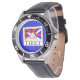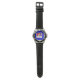 My husband loves the watch, he likes the dial, the graphics, the band, and it keeps perfect time.