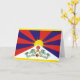 This design features the national flag of Tibet, which was used by the independent state of Tibet between 1916 and 1951. It was banned by the Chinese government in 1959. The flag features two snow lions between a blue-and-orange yin-yang symbol, and it used today by the Tibetan Government in Exile, which is based in Dharamshala (also spelled Dharamsala), India.