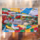 Landscape view from Ganden Buddhist Monastery with prayer flags in foreground - Tibet