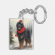 Tibetan Mastiff Dog in Snow Christmas Key Ring