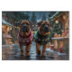 This festive design captures the joyful spirit of the holiday season, featuring an adorable dogs.Nestled in a winter wonderland, complete with a decorated Christmas tree, and beautifully wrapped presents. Snowflakes gently fall, adding a magical touch to the scene, while the vibrant colours of the holiday decorations create a warm and cheerful atmosphere.