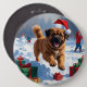 Tibetan Mastiff Running in Snow with Christmas Hat 6 Cm Round Badge