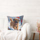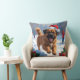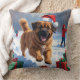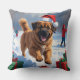 Tibetan Mastiff Running in Snow with Christmas Hat Cushion