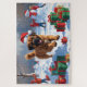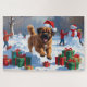 Tibetan Mastiff Running in Snow with Christmas Hat Jigsaw Puzzle