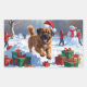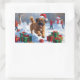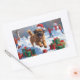 Tibetan Mastiff Running in Snow with Christmas Hat Rectangular Sticker