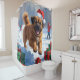 Tibetan Mastiff Running in Snow with Christmas Hat Shower Curtain