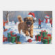 Tibetan Mastiff Running in Snow with Christmas Hat Tea Towel
