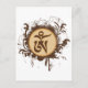 Tibetan Om symbol in brown and orange is the focus of this Om Mani Padma Hum design with the Om symbol in the centre of tan and orange circle with brown floral background! Bold yet understated Tibetan Buddhism Om gifts for yoga lovers and Buddhists!