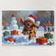 Tibetan Spaniel Running in Snow with Christmas Hat Jigsaw Puzzle