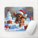 Tibetan Spaniel Running in Snow with Christmas Hat Mouse Pad