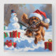 Tibetan Spaniel Running in Snow with Christmas Hat Square Wall Clock