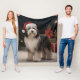 Tibetan Terrier Dog in Snow Christmas Fleece Blanket