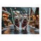 This festive design captures the joyful spirit of the holiday season, featuring an adorable dogs.Nestled in a winter wonderland, complete with a decorated Christmas tree, and beautifully wrapped presents. Snowflakes gently fall, adding a magical touch to the scene, while the vibrant colours of the holiday decorations create a warm and cheerful atmosphere.