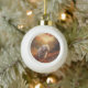 Tibetan Terrier in Autumn Leaves Fall Inspire Ceramic Ball Christmas Ornament