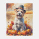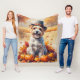 Tibetan Terrier In Autumn Leaves Thanksgiving Art Fleece Blanket