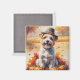 Tibetan Terrier In Autumn Leaves Thanksgiving Art Magnet