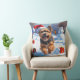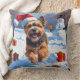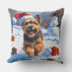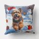 Tibetan Terrier Running in Snow with Christmas Hat Cushion