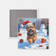 Tibetan Terrier Running in Snow with Christmas Hat Magnet