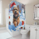 Tibetan Terrier Running in Snow with Christmas Hat Shower Curtain