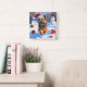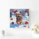 Tibetan Terrier Running in Snow with Christmas Hat Square Wall Clock