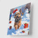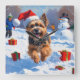 A lively Tibetan Terrier runs joyfully through the snowy winter scene, wearing a festive red Christmas hat. This charming design highlights the breed’s long flowing coat, playful personality, and affectionate nature while capturing the warmth and joy of the holiday season. A delightful winter moment full of festive cheer.