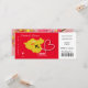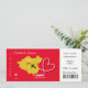 A fun but stylish wedding invitation in a boarding pass/ticket style for couples getting married in China which is shown in a map silhouette on red, with sweet love hearts, plane silhouette and swirling heart shape The reverse has a space for your photo and contact/RSVP details on a pretty oriental gold and pink cherry blossom pattern