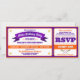 Fun, allstar baseball game ticket style birthday party invitation in your team colors of purple and orange.