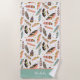 Tickle me pink, teal, black and gold with this cute feather pattern beach towel! Boho style pattern feathers in colours of salmon pink, teal green, black and gold dance across a background of white. Little gold dots are scattered about to add interest. Unique and attractive!