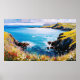 Tidal Dreams and Meadow Breezes. The boundless blue sea and bright, windswept meadows of wild blooms merge in a dance of light and movement, a vision of serenity and untamed beauty. This stylised watercolour brings the wild coastline of Wales to life, where dramatic cliffs embrace the rolling waves of an untamed ocean.