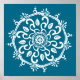 This white mandala sits on a teal background. The colours are very calming and peaceful. Part of the Payon Mandala Collection.