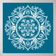 This white mandala sits on a teal background. The colours are very calming and peaceful. Part of the Rosenn Mandala Collection.